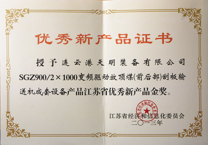 ● 2013年交流变频拖动刮板输送机成套装备荣获首台(套)重大技术装备认定及国家重点新产品
