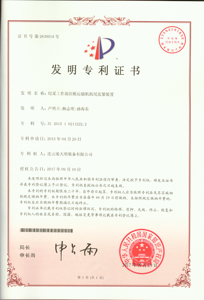 ● 2015年刮板输送机紧链装置荣获中国煤炭工业发明专利一等奖